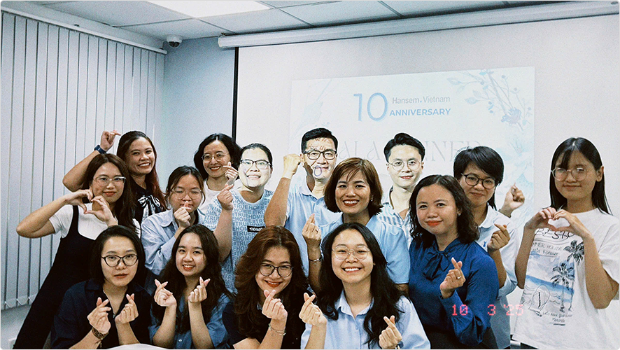 Tháng 10 vừa qua, Hansem Việt Nam đã chính thức tròn 10 tuổi - một thập kỷ của những giờ làm việc khuya, những tiếng cười giòn tan, những lần “chạy deadline” thót tim, và cả những bước trưởng thành bên nhau. Từ dự án đầu tiên vào tháng 10/2015, chúng tôi đã đi qua vô số “đêm trắng” mày mò học công cụ dịch thuật mới, những buổi họp online quên cả múi giờ và cả những ngày làm việc tại nhà giữa mùa dịch đầy thử thách.